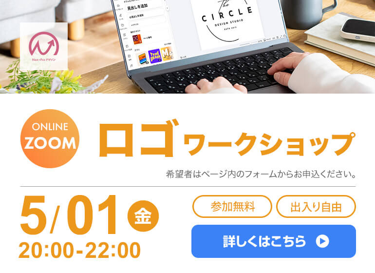 Non→Proデザインでは、月に1回、テーマを決めて実践的に取り組むワークショップを開催しています♪ 今回のテーマについて 今回のテーマは、『ロゴ』ワークショップです!講師がリアルタイムでロゴ制作を行います。 まずはじっくり見るだけでもOK!一緒に作ってもOK! 開催について ワークショップ内容 など制作しながら、「考え方」や「進め方」を整理していく時間です♪ Canvaの基本的な使い方から学びたい!という方や講師の実際の画面を見てみたいという方におすすめのワークショップです!ご参加、お待ちしております!